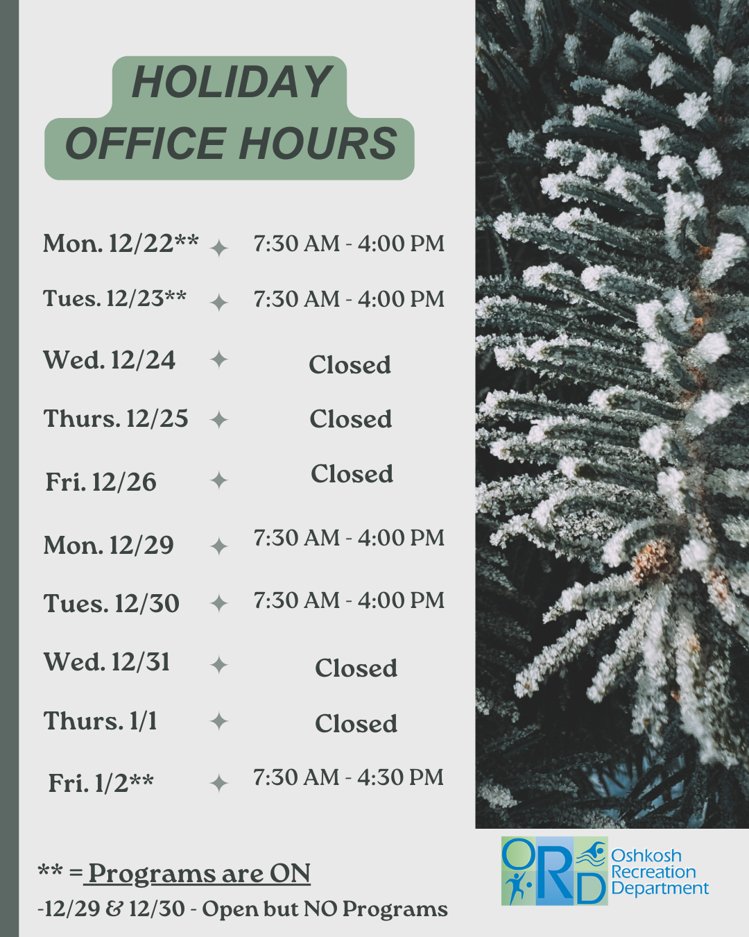*Please contact our office as soon as possible if you are needing to drop from a program.*